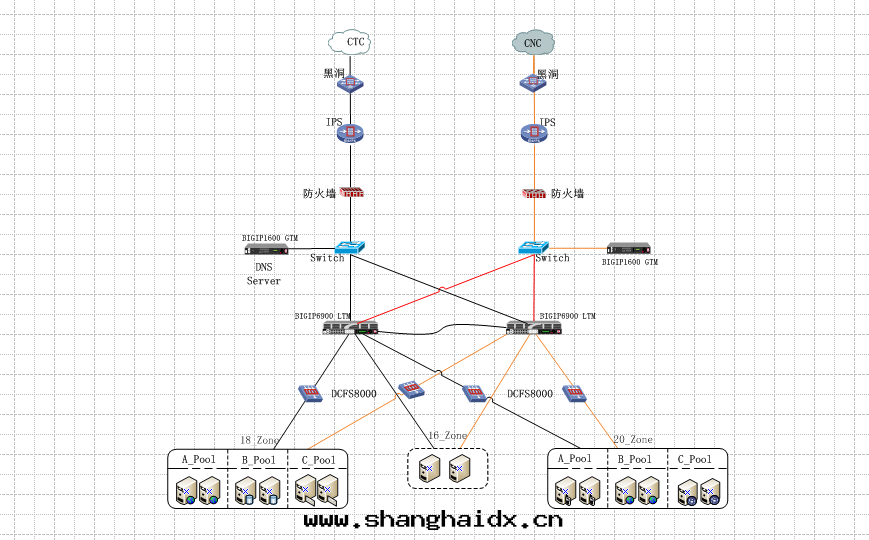为(wèi)了(le)保证數據(jù)中(zhōng)心(xīn)的(de)高(gāo)可(kě)靠及(jí)其(qí)用(yòng)戶訪問(wèn)速度,XX地(dì)稅使用(yòng)了(le)電(diàn)信(xìn),聯通(tòng)两条(tiáo)线路来(lái)将整个(gè)應(yìng)用(yòng)發(fà)布(bù)出(chū)去(qù)。通(tòng)过(guò)在(zài)每条(tiáo)鍊(liàn)路上(shàng)部(bù)署(shǔ)F5 GTM廣域网(wǎng)负载(zài)均衡器保证了(le)任意(yì)一(yī)条(tiáo)鍊(liàn)路故障,系(xì)統仍能(néng)夠对外(wài)提(tí)供服(fú)務(wù);同(tóng)时(shí)優化(huà)了(le)客戶端訪問(wèn)速度,在(zài)两条(tiáo)鍊(liàn)路上(shàng)智能(néng)的(de)進(jìn)行客戶端流量(liàng)分(fēn)擔,保证用(yòng)戶從一(yī)个(gè)适合的(de)鍊(liàn)路接入(rù)訪問(wèn),從而(ér)加速客戶端訪問(wèn)速度,提(tí)高(gāo)了(le)客戶的(de)體(tǐ)验(yàn)度,提(tí)高(gāo)了(le)客戶端的(de)滿意(yì)度。