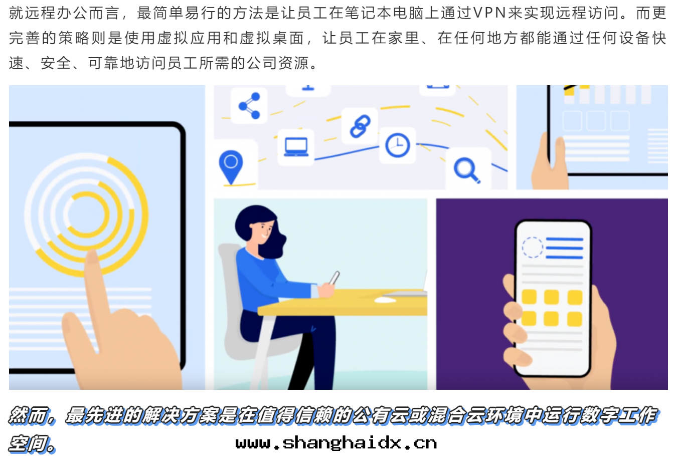 这(zhè)種(zhǒng)方(fāng)法(fǎ)不(bù)僅具備本(běn)地虛拟應(yìng)用(yòng)和(hé)桌(zhuō)面(miàn)的(de)所(suǒ)有(yǒu)優势,同(tóng)时(shí)還(huán)擁有(yǒu)其(qí)他優势,比如(rú)利用(yòng)公(gōng)有(yǒu)雲(yún)基礎設施獲得更高(gāo)的(de)可靠性(xìng)。如(rú)此(cǐ),員工和(hé)团(tuán)隊都能(néng)按需訪問(wèn)个(gè)人(rén)工作环(huán)境,並(bìng)且(qiě)工作环(huán)境会(huì)一(yī)直(zhí)受到(dào)監控和(hé)保護,以(yǐ)防止數據(jù)洩露(lù)並(bìng)预防网絡攻擊。但是(shì),解(jiě)決方(fāng)案(àn)必須要(yào)簡單易用(yòng)。否則,員工可能(néng)会(huì)为(wèi)了(le)方(fāng)便沟(gōu)通(tòng)或(huò)提(tí)升(shēng)效率而(ér)去(qù)使用(yòng)普通(tòng)的(de)消費者(zhě)應(yìng)用(yòng)程序。